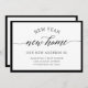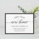 Estas invitaciones en blanco y negro, elegantes y elegantes dicen "año nuevo, nuevo hogar" en una mezcla de escritura moderna y moderno y texto en serif. Un borde negro añade un toque de elegancia. ¡La manera perfecta de desear a la familia y amigos un feliz año nuevo mientras les hace saber que se han mudado!