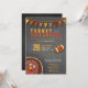 Anotaciones y pavo Día de Acción de Gracias - Invitación para el día de juego, presenta un pavo lindo asomándose desde la esquina y un fútbol. Espacio para todos los detalles de su evento. Esta fiesta de Tailgate es perfecta para las fiestas o cualquier evento de día de juego.