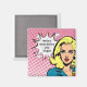 Cuidado imán recordatorio para tu frigorífico u oficina en un estilo de arte pop vintage.