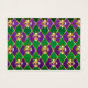 joyas, fondo del Mardi Gras de rhombus violeta y verde, lirios dorados decorados.