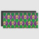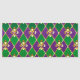 joyas, fondo del Mardi Gras de rhombus violeta y verde, lirios dorados decorados.