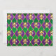 joyas, fondo del Mardi Gras de rhombus violeta y verde, lirios dorados decorados.