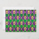 joyas, fondo del Mardi Gras de rhombus violeta y verde, lirios dorados decorados.
