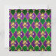 joyas, fondo del Mardi Gras de rhombus violeta y verde, lirios dorados decorados.
