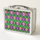 joyas, fondo del Mardi Gras de rhombus violeta y verde, lirios dorados decorados.