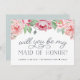 Elige estas bellas cartas para pedirle a tu mejor amigo, hermana o ser tu dama de honor en un estilo elegante. El diseño floral vintage presenta peonías de acuarela de color rosa rubor en la parte superior con tipografía decorativa y letras grises de color azul ahumado. El texto de la tarjeta de presentación de la doncella de honor dice "¿será mi dama de honor? ¡No puedo decir que lo haga sin ti!" Añade el nombre de tu dama de honor y tu nombre, o personaliza con un mensaje completamente personalizado a lo largo de la parte inferior.