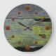 Reloj de pared de tablones de madera de paja de mezsy, con marcadores de hora de clavos oxidados - todo creado digitalmente