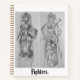 Representación dibujada a mano de antiguos combatientes. Cuaderno en espiral.