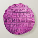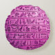 Una almohada violeta redonda con antiguos jeroglíficos grabados en piedra. Ideal para la decoración de Halloween. ¡También disponible en otras formas!