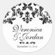 Sofisticados pegatinas de la Boda Damasco Negra. Patrón rústico y vintage de damasco negro con un sólido fondo negro, estas pegatinas de la Boda Negra Vintage son perfectas para tu boda de ensueño con su sofisticación y belleza. Diseñado Metro-Events.com, la decoración y los materiales bodas coordinados están disponibles en la tienda MetroEvents en Zazzle, dentro de nuestra colección de bodas Vintage Damask.