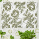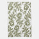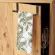 Una elegante toalla de cocina con un antiguo estampado floral de rosas vintage de color blanco y falso dorado.