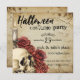 Personalizar y personalización de esta invitación de Halloween Costume Party con rosas antiguos, una candela y cráneo espeluznantes iluminados en la esquina inferior izquierda de la invitación. En el reverso de esta invitación aparece el mismo ilustracion. Agrega todos los detalles de tu fiesta de Halloween y disfruta de tus festividades de Halloween.
