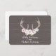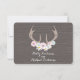 Un boda r.s.v.p. con un ilustracion de ciervos adornados con flores pastel y margaritas. El fondo está inspirado en la madera de pino. Personalice el texto.
