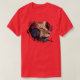 El color es muy bonito al natural, como la foto. El tejido es suave y de buena calidad. Sin defectos en el tintado, ni hilos sueltos o descosidos. Bien la impresión. Los bordes de las letras y el dibujo son nítidos, y el color contrasta muy bien con el de la camiseta.