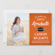 Comparte la alegría de una escuela secundaria o universitaria con estos naranjas de fotos personalizados, invitaciones blancas y negras. (IMAGEN PLACEMENT TIP: Una manera fácil de centrar una imagen exactamente como se desea es recortarla antes de subirla al sitio web de Zazzle.) Esta plantilla es sencilla para el personalizar con cualquier texto de su elección, como detalles de la invitación a la fiesta, nombres de los padres, honores especiales, título de grado, cotización inspiradora favorita, información de contacto del graduado, planes de educación futuros o nueva posición laboral. Si hay algún texto que no se desee simplemente borrarlo. El diseño presenta un fondo oscuro naranja, un tapón negro de la placa de mortero, caligrafía de escritura a mano, una tipografía moderna elegante y una foto de su elección, como una foto de la parte superior o una imagen de la ceremonia de inicio. Estas elegantes tarjetas de invitación de graduación son una manera elegante de compartir su celebración especial del día con la familia y los amigos. ¡Felicitaciones al graduado!