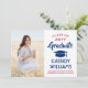 Comparte la alegría de una graduación de escuela secundaria o universidad con estos anuncios personalizados de fotos rojas, blancas y azules. (CONSEJO DE UBICACIÓN DE IMAGEN: Una forma fácil de centrar una imagen exactamente como la desea es recortarla antes de subirla al sitio web de Zazzle.) Esta plantilla es simple de personalizar con cualquier redacción de su elección, como detalles de la invitación a la fiesta, nombres de los padres, honores especiales, título del grado, cita inspiradora favorita, información de contacto del graduado, planes de educación futura o nuevo puesto de trabajo. Si hay algún texto que no se desee, simplemente elimínelo. El diseño presenta un fondo blanco, gorra de graduación azul, caligrafía de estilo manuscrito, tipografía moderna elegante y una foto de su elección, como una foto de último año o imagen de la ceremonia de graduación. Estas elegantes tarjetas de anuncio de graduación son una forma elegante de compartir la celebración de su día especial con familiares y amigos.