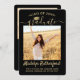 Comparte la alegría de una graduación de secundaria o universitaria con estas invitaciones de personalizado 2 de oro y negro. (IMAGEN PLACEMENT TIP: Una manera fácil de centrar una imagen exactamente como se desea es recortarla antes de subirla al sitio web de Zazzle.) Esta plantilla incluye el nombre del graduado, el año de clase y la escuela, y es sencilla para el personalizar con cualquier texto de su elección, como detalles de la invitación de partido, nombres de padres, honores especiales, título de grado, presupuesto inspirador favorito, información de contacto del graduado, planes de educación futuros o nueva posición laboral. Si hay algún texto que no se desee simplemente borrarlo. El diseño incluye una tapa de tablero de mortero de Relieve metalizado falso, caligrafía de escritura a mano, tipografía minimalista moderna y dos fotos de su elección, como imágenes senior o de la ceremonia de inicio. Tenga en cuenta que el oro es color impreso, no Relieve metalizado metálico. Estas elegantes tarjetas de invitación de graduación son una forma moderna y moda de compartir tu celebración especial del día con la familia y amigos. ¡Felicitaciones al graduado!