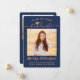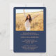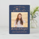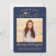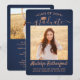 Comparte la alegría de una graduación de secundaria o universitaria con estas invitaciones de cobre y azul marino personalizado 2. (IMAGEN PLACEMENT TIP: Una manera fácil de centrar una imagen exactamente como se desea es recortarla antes de subirla al sitio web de Zazzle.) Esta plantilla incluye el nombre del graduado, el año de clase y la escuela, y es sencilla para el personalizar con cualquier texto de su elección, como detalles de la invitación de partido, nombres de padres, honores especiales, título de grado, presupuesto inspirador favorito, información de contacto del graduado, planes de educación futuros o nueva posición laboral. Si hay algún texto que no se desee simplemente borrarlo. El diseño presenta un fondo oscuro azul oscuro, una tapa falsa de la placa de mortero de Relieve metalizado, caligrafía manuscrita de escritura, tipografía minimalista moderna y dos fotos de su elección, como imágenes de la ceremonia de graduación o imágenes de la ceremonia de graduación. Tenga en cuenta que el cobre es color impreso, no Relieve metalizado metálico. Estas elegantes tarjetas de invitación de graduación son una forma moderna y moda de compartir tu celebración especial del día con la familia y amigos. ¡Felicitaciones al graduado!