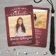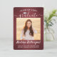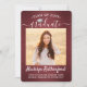 Comparte la alegría de una graduación de escuela secundaria o universidad con estos anuncios personalizados de 2 fotos rojos, blancos y plateados. (CONSEJO PARA COLOCAR LA IMAGEN: Una forma fácil de centrar una imagen exactamente como la desea es recortarla antes de subirla al sitio web de Zazzle.) Esta plantilla incluye el nombre del graduado, año de graduación y escuela, y es simple de personalizar con cualquier texto de su elección, como detalles de la invitación a la fiesta, nombres de los padres, honores especiales, título del grado, cita inspiradora favorita, información de contacto del graduado, planes de educación futura o nuevo puesto de trabajo. Si hay algún texto que no se desee, simplemente elimínelo. El diseño presenta un fondo rojo burdeos / granate cepillado, una tapa de birrete de hojalata falsa, caligrafía de estilo manuscrito, tipografía minimalista moderna y dos fotos de su elección, como fotos de último año o imágenes de la ceremonia de graduación. Tenga en cuenta que el fondo es de color impreso, no de lámina metálica. Estas elegantes tarjetas de anuncio de graduación son una forma elegante de compartir