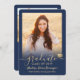 Comparte la alegría de una escuela secundaria o graduación universitaria con estas invitaciones de personalizado 2 azul marino y oro. Todas las imágenes y la redacción son simples de personalizar. (IMAGEN PLACEMENT TIP: Una manera fácil de centrar una foto exactamente como quieres es recortarla antes de subirla al sitio web de Zazzle.) Esta plantilla es sencilla para el personalizar con cualquier detalle de su elección, como información sobre la invitación a la fiesta, nombres de los padres, honores especiales, título de grado, cotización inspiradora favorita, información de contacto del graduado, planes de educación futuros o nueva posición laboral. Si hay algún texto que no se desee simplemente borrarlo. El diseño incluye una tapa de tablero de mortero de Relieve metalizado de oro falso, caligrafía de escritura a mano, tipografía minimalista moderna y dos fotos de su elección, como imágenes senior o de la ceremonia de inicio. Estas elegantes tarjetas de invitación de graduación son una forma moderna y moda de compartir tu celebración especial del día con la familia y amigos. ¡Felicitaciones al graduado!