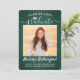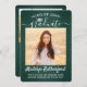Comparte la alegría de una escuela secundaria o graduación universitaria con estos personalizados 2 invitaciones verdes, blancas y plateadas. (IMAGEN PLACEMENT TIP: Una manera fácil de centrar una imagen exactamente como se desea es recortarla antes de subirla al sitio web de Zazzle.) Esta plantilla incluye el nombre del graduado, el año de clase y la escuela, y es sencilla para el personalizar con cualquier texto de su elección, como detalles de la invitación de partido, nombres de padres, honores especiales, título de grado, presupuesto inspirador favorito, información de contacto del graduado, planes de educación futuros o nueva posición laboral. Si hay algún texto que no se desee simplemente borrarlo. El diseño presenta un fondo de color verde oscuro, un gorro de tablero de mortero de Relieve metalizado falso, caligrafía de escritura a mano, tipografía minimalista moderna y dos fotos de su elección, como imágenes senior o de la ceremonia de inicio. Tenga en cuenta que el fondo está impreso en color y no en Relieve metalizado metálico. Estas elegantes tarjetas de invitación de graduación son una manera elegante de compartir su celebración especial del día con la familia y los amigos. ¡Felicitaciones al graduado!