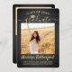 Comparte la alegría de una graduación de secundaria o universitaria con estas invitaciones de personalizado 2 de oro y negro. (IMAGEN PLACEMENT TIP: Una manera fácil de centrar una imagen exactamente como se desea es recortarla antes de subirla al sitio web de Zazzle.) Esta plantilla incluye el nombre del graduado, el año de clase y la escuela, y es sencilla para el personalizar con cualquier texto de su elección, como detalles de la invitación de partido, nombres de padres, honores especiales, título de grado, presupuesto inspirador favorito, información de contacto del graduado, planes de educación futuros o nueva posición laboral. Si hay algún texto que no se desee simplemente borrarlo. El diseño presenta un fondo negro cepillado, una tapa de tablero de mortero de Relieve metalizado falso, caligrafía de escritura a mano, tipografía minimalista moderna y dos fotos de su elección, como imágenes senior o de la ceremonia de inicio. Tenga en cuenta que el oro es color impreso, no Relieve metalizado metálico. Estas elegantes tarjetas de invitación de graduación son una manera elegante de compartir su celebración especial del día con la familia y los amigos. ¡Felicitaciones al graduado!