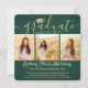 Comparte la alegría de una escuela secundaria o graduación universitaria con estos personalizados cuadrados de invitaciones de collage de fotos verdes y doradas. Todas las imágenes y la redacción son simples de personalizar. (IMAGEN PLACEMENT TIP: Una manera fácil de centrar una foto exactamente como quieres es recortarla antes de subirla al sitio web de Zazzle.) Esta plantilla se puede personalizar con cualquier detalle de su elección, como información sobre la invitación a la fiesta, los nombres de los padres, los honores especiales, el título del título, la cita inspiradora favorita, la información de contacto del graduado, los planes de educación futuros o la nueva posición laboral. El diseño presenta un fondo oscuro verde, una tapa falsa de la placa de mortero de Relieve metalizado, caligrafía manuscrita de escritura, tipografía minimalista moderna y cuatro fotos de su elección, como imágenes senior o de la ceremonia de inicio. Tenga en cuenta que el oro es color impreso, no Relieve metalizado metálico. Estas elegantes tarjetas de invitación de graduación son una forma moderna y moda de compartir tu celebración especial del día con la familia y amigos. ¡Felicitaciones al graduado!