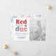Invitación de embarazo Patriótica Roja Blanca y Debido (una obra de teatro sobre "Blanco y Azul Rojo") con una foto de la madre brillante para ser o ambos orgullosos padres. La parte delantera presenta una tipografía divertida (en rojo blanco y azul, por supuesto) en un moderno tipo de letra retro inspirado en los años 70. El reverso es una huella hecha de ilustraciones de color rojo blanco y azul de acuarela.