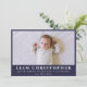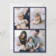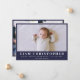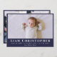 Esta tarjeta Navy Blue Simple Baby Announting es moderna y minimalista. La tarjeta de personalizable completa incluye una foto horizontal en el frente con el nombre de su bebé, las estadísticas de nacimiento y los nombres de sus padres. La parte de atrás muestra un collage de tres fotos. Perfecto para compartir su alegría, este diseño minimalista es ideal para invitaciones de bebé neutrales en género. Celebra a tu recién nacido con esta sencilla y elegante tarjeta de invitación.