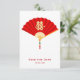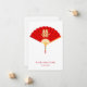 Desde emperatrices hasta aldeanas pobres, los abanicos han sido parte de la cultura china durante miles de años. En el fengshui, el abanico se utiliza para guiar y redirigir la energía al espacio deseado. En este diseño, el abanico se utiliza simbólicamente para dirigir la felicidad a la pareja recién casada; de ahí el carácter "Doble Felicidad" pintado en el abanico. El carácter chino "Doble Felicidad" en color dorado escrito xi o "hsi" en mandarín y pronunciado "shuang-xi" es un carácter chino bien conocido utilizado tradicionalmente en las bodas chinas como símbolo de amor, felicidad y suerte para la pareja recién casada. El color rojo es un color auspicioso y popular en la cultura china. Simboliza suerte, felicidad y alegría. El uso de fuentes contemporáneas completa el diseño. Un diseño