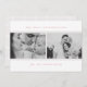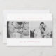 Un diseño sencillo y dulce con tipografía clásica, un guión de caligrafía y dos fotos envían un sentimiento simple. Abrazos, besos y deseos de vacaciones.