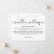 Tarjeta de anuncio de actualización de boda simple moderna. El diseño presenta la escritura de caligrafía ''actualización de boda'' y detalles en letras mayúsculas de moda.