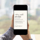 Anuncio de cambio de ubicación de boda minimalista moderna con "actualización de boda nueva ubicación" escrito en una mezcla de tipografía contemporánea y tipografía negrita de moda (puedes personalizar esto a "nueva fecha", "boda más pequeña", etc.). Personaliza tu mensaje de cambio de planes, agrega tus nombres en una tipografía similar a una firma y agrega tu sitio web de boda en el reverso o déjalo en blanco.