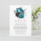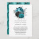 Anuncio de boda pospuesta con flores de brillo falsas turquesa rústico (verde azulado), negro y plata con tapicería de cuero tachonado de diamantes personalizable al revés según los detalles de su evento.