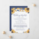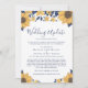Si las circunstancias requieren que mantengas tu boda pequeña, puedes informar a tus familiares y amigos que no podrán asistir con este anuncio de boda moderno, brillante y alegre que presenta acuarelas amarillas y azules marinos de girasoles, flores y follaje, "Actualización de Boda" en elegante letra cursiva azul marino y los detalles en tipografía simple azul marino. Puedes personalizar fácilmente "Actualización de Boda" con algo similar en longitud (por ejemplo, "Boda más pequeña", "Boda reducida", etc.), tu mensaje de boda reducida con más detalle y agregar cualquier evento de boda virtual y celebraciones futuras.
