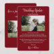 Actualice a sus invitados con esta tarjeta de anuncio de boda de color rojo burgundy con sus planes de reducir el tamaño a una ceremonia de boda más íntima y pequeña y planean transmitir en vivo su día especial para que se unan a usted de forma virtual.