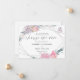Cuando tus planes cambian para la fecha de tu boda, esta tarjeta es una buena opción para informar a tus invitados que la fecha ha cambiado. Cuenta con una hermosa combinación de delicadas acuarelas y hojas y flores dibujadas. Las formas geométricas de moda enmarcan el diseño con su colocación asimétrica. El reverso de la invitación tiene las iniciales de la novia y el novio con un ampersand decorativo floral. Los colores incluyen tonos de rosa, púrpura, lavanda, melocotón, amarillo cremoso, turquesa y verde. Si ya has pedido tus invitaciones de boda antes de que la fecha cambiara, esta tarjeta se puede utilizar como un anexo con tus invitaciones para informar a tus invitados del cambio de fecha. Puedes reformular el texto para adaptarlo a tus circunstancias específicas.