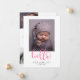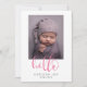 Acuarela Script Hola Foto Collage Gris Anuncio de bebé es una toma muy moderna y minimalista de cómo presentar la llegada de tu nuevo integrante a la familia. La parte delantera tiene una sola foto sobre fondo blanco minimalista con solo el nombre del bebé. La parte trasera es un collage de tres fotos cuadradas con la fecha de nacimiento editable, estadísticas de nacimiento y texto de bienvenida.