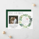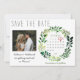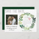 Que amigos y familiares sepan que se están casando con esta sencilla acuarela, salven las tarjetas de anuncio de fecha. El diseño presenta una tipografía rústica y una cortina de color de agua pintada a mano con un follaje verde. Una imagen adorable de la pareja feliz aporta un toque especial, al igual que el calendario personalizado. Perfecto para un boda de primavera o verano.