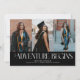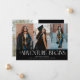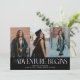 Modern and elegant graduation announcement photo card featuring 3 photos on the front and 1 on the back. The text says "the adventure begins." Add the graduate's name, information, and message to personalize this card. Black color.