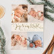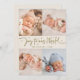 Tarjeta de anuncio de natalidad temática para Navidades modernos que incluye un texto escrito a mano que dice "alegría para nuestro mundo" con 4 fotos. ¡Esta es una tarjeta de anuncio de nacimiento para las fiestas! ¡Añade tus fotos, estadísticas de nacimiento y un mensaje! El fondo es crema.