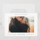 Este sencillo y elegante boda fotográfico moderno modelo de invitación para tarjetas planas de para elopement incluye sus nombres y detalles debajo de la foto. Hemos elegido esquinas redondeadas como el bit de forma predeterminado que se ve genial con esquinas nítidas también, así que intenta que ambos luzcan en modo de edición para ver qué te agarra. El texto en ambos lados es un tono gris de forma predeterminada. Puede elegir cambiar el tipo de letra, puntuación o color utilizado para varios elementos de texto de este diseño en la parte frontal y/o posterior. Por ejemplo, puede elegir dar un color diferente al texto de su nombre, o cambiar '¡NOSOTROS ATACAMOS EL KNOT!' PARA '¡NOS CASAMOS!' o algo más. Puede optar por eliminar algo o cambiar un campo de texto por completo con un mensaje diferente. Notarán que hemos utilizado exclusivamente fundas inferiores, incluso para los nombres de ejemplo y la ubicación de ejemplo, para dar a este diseño un camino menos recorrido. Por supuesto, puede usar capital estándar y funda menor cuando edite la tarjeta para sus propios detalles, si lo prefiere. El fondo del frente se establece como transparente para que el color del papel sirva simplemente como tono base, pero puede editarlo y elegir un color si lo prefiere. En la parte de atrás, hemos elegido un color de fondo llamado Humo Blanco, es un gris muy claro que es mayormente blanco. También puedes cambiar esto si quieres. Hemos colocado un texto de marcador de posición en la parte posterior para que lo elimine y lo reemplace con su propio mensaje, con o sin sus nombres, si desea firmar a mano cuando obtenga las tarjetas. Pero también puede optar por borrar el texto de nuestro marcador de posición y dejar la parte posterior completamente en blanco para que pueda escribir un mensaje a mano en cada tarjeta y firmar sus nombres. El tipo de papel predeterminado, mate, tiene un calor suave y se resiste a la suciedad, por lo que es una gran opción para escribir su propio mensaje. Puede editar esto y elegir en su lugar un tipo de papel o semirbrillo. En cualquier funda, recuerde que también hay un texto de marcador de posición en la parte posterior y elimine todo nuestro texto de ejemplo/marcador de posición en ambos lados de la tarjeta, así como nuestra foto de ejemplo! Esperamos que disfrutes experimentando con este diseño moderno y limpio de invitación de elopement y lo hagas único tuyo con las intuitivas herramientas de diseño tu foto favorita y tu inspiración!