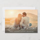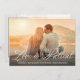 Esta tarjeta plana personalizada de aplazamiento de boda romántica presenta una plantilla de diseño de tipografía con su foto en la portada y las palabras "El amor es paciente" en escritura blanca romántica con sus nombres y anuncio de aplazamiento de boda para personalizar. La parte posterior de la tarjeta tiene una foto con una superposición y un mensaje y firma para personalizar también. ¡Mejores deseos para su futura boda! Diseñado por Susan Coffey.