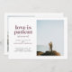 Si has tomado la decisión de huir en lugar de esperar a una fecha de boda pospuesta, comparte tu gran noticia con esta tarjeta de anuncio de fuga. Cuenta con texto malva y gris oscuro y espacio para una sola foto vertical en la parte delantera, así como espacio para la fecha y el lugar de la fuga. La parte trasera de la tarjeta tiene espacio para otra foto y una nota personal.