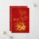Papel dorado cortado de una rata con frutas y flores + nubes agudas chinas doradas (gráfico de líneas) + marcos chinos de color rojo oscuro en las cuatro esquinas. Diseño en fiesta rectangular de tarjetas planas con fondo rojo y textos: 2020 y El año de la rata al personalizar si quieres (delante) y las mismas nebulosas auspiciosas (atrás) con texto para el fiesta chino de Año Nuevo al personalizar. Puede cambiar fácilmente el texto (fuente, tamaño, color y posición) y el color de fondo haciendo clic en el botón personalizar. Coincidiendo con la tarjeta de felicitación, la postal y más...