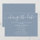 Anuncia el aplazamiento de tu boda con esta tarjeta minimalista en azul polvo que presenta una fuente de letra moderna.