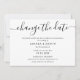 Anuncia el aplazamiento de tu boda con esta tarjeta minimalista en blanco y negro que presenta una fuente de escritura moderna.