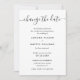 Anuncia el aplazamiento de tu boda con esta tarjeta minimalista en negro y blanco que presenta una fuente de escritura moderna.