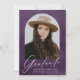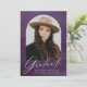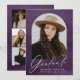 Anuncie el logro de su graduado con esta elegante invitación de graduación, que presenta un elegante marco en arco que destaca su foto en un rico fondo de color morado. "Graduado" es elegantemente escrito en caligrafía blanca moderna, con el nombre del graduado, la escuela y el año de graduación mostrado abajo para un toque personal. La parte posterior de la tarjeta muestra un diseño de cuadrícula con seis fotos cuadradas, perfecto para compartir recuerdos favoritos. Esta invitación personalizada de graduación fotográfica es una elección sofisticada para graduados de secundaria y universitarios, haciendo su hito aún más especial.