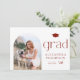 Anuncia tu graduación a familiares y amigos con esta tarjeta de anuncio de graduación de foto personalizable. Cuenta con tipografía minimalista roja y marco de foto de arco. Personaliza este anuncio de graduación boho añadiendo una foto, nombre, escuela y otros detalles. Este anuncio de graduación de foto moderno está disponible en otro tipo de cartulina.